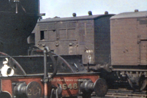 The livery is intriguing, too, for this was classed as a goods van, even though fitted with AVB and through steam heat pipe. The body colour can be loosely described as brown and I think I can see the large white letters "NE" placed fairly centrally, between the doors. Further text would have been placed below them, and the slide seems to show what may be two words, in yellow??