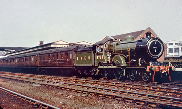 To the right stands what looks like an ex-GER D16 with a short Ordinary Passenger train and, on the rear, an ex-GER clerestory. It's quite clean and a pleasing dark brown colour, quite unlike the Gresley stock. Photo: Colour-Rail BRE1940.